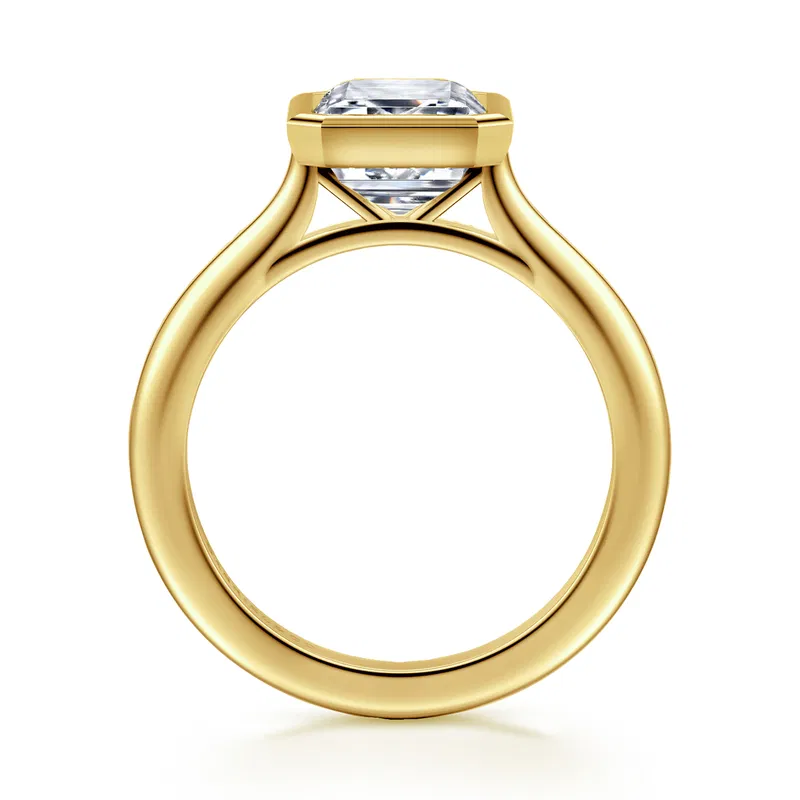 Bezel Set Emerald Cut Solitaire Engagement Ring